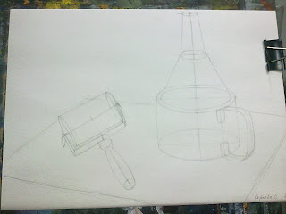 Второе занятие штриховали. Задача была такой - работать тоном чтоб было видно оси построения и само построение
